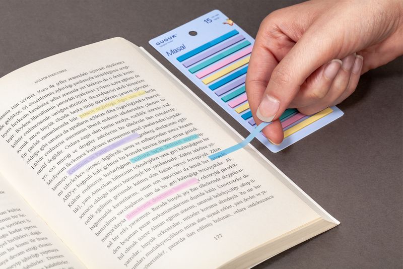 Renkli ve Pratik: 300 adet masal indeks etiketleriyle düzeninizi ve yaratıcılığınızı artırın! 15 çeşit renk, yapışkanlı, iz bırakmayan yapısı ve cetvel kenarları ile her yerde kullanım kolaylığı sağlar. Ev, ofis, okul için ideal!