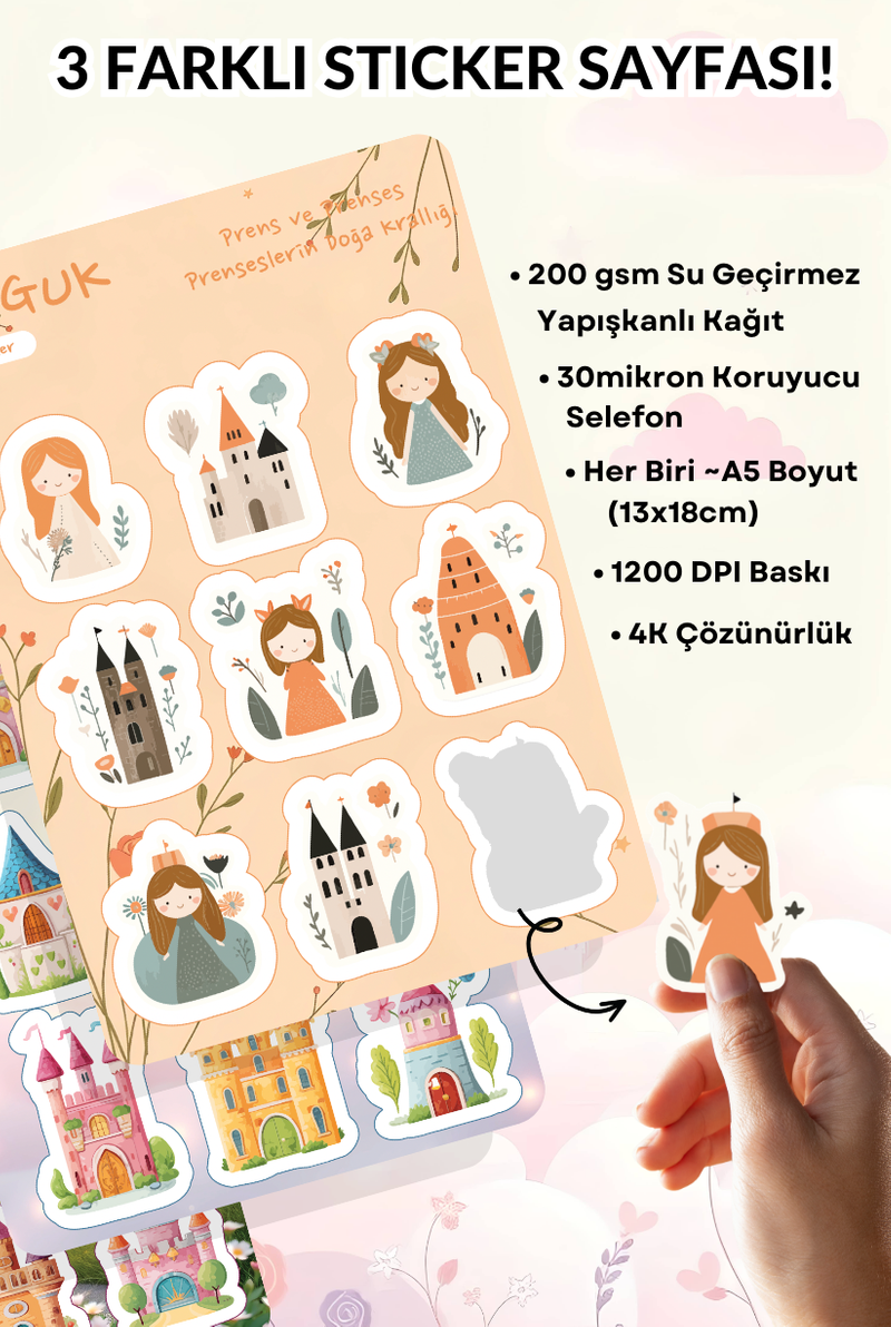 • Her Biri ~A5 Boyutunda (13x18cm) 3 Farklı Sticker Yaprağı