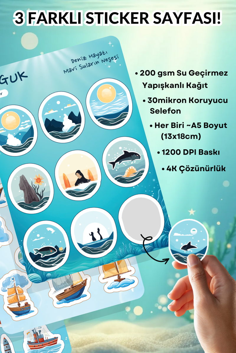 • Her Biri ~A5 Boyutunda (13x18cm) 3 Farklı Sticker Yaprağı