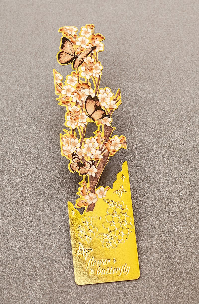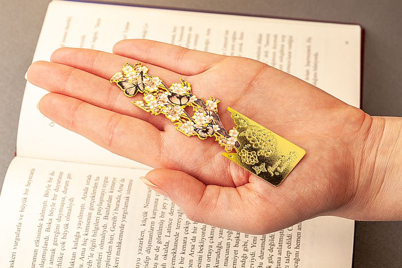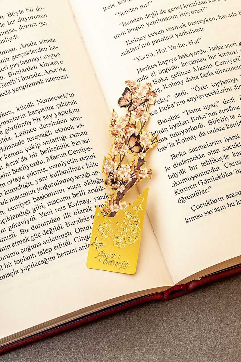 Metal Kitap Ayracı - Kahverengi Kelebek Desenli (MA07)