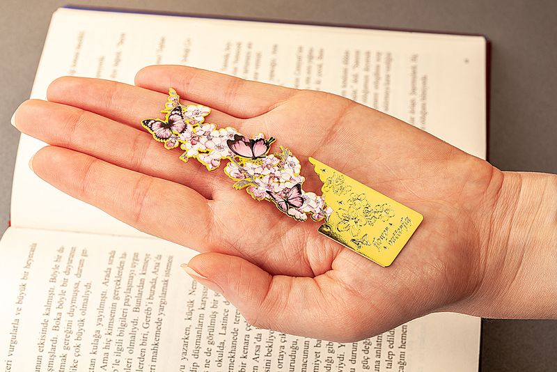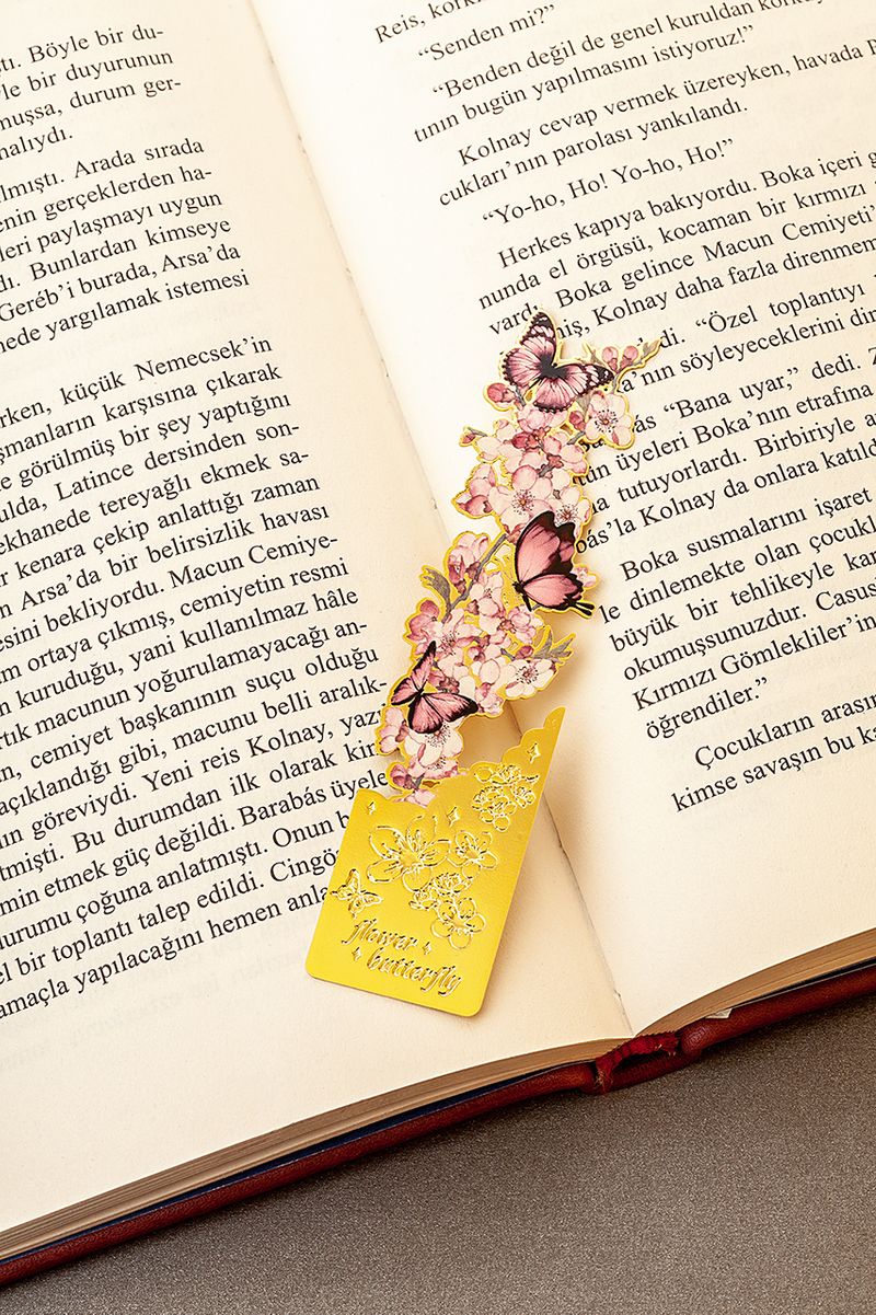 Metal Kitap Ayracı - Pembe Kelebek Desenli (MA06)