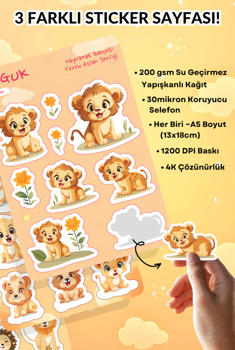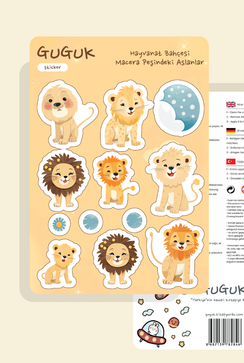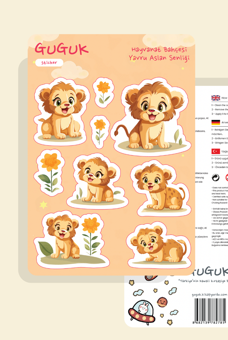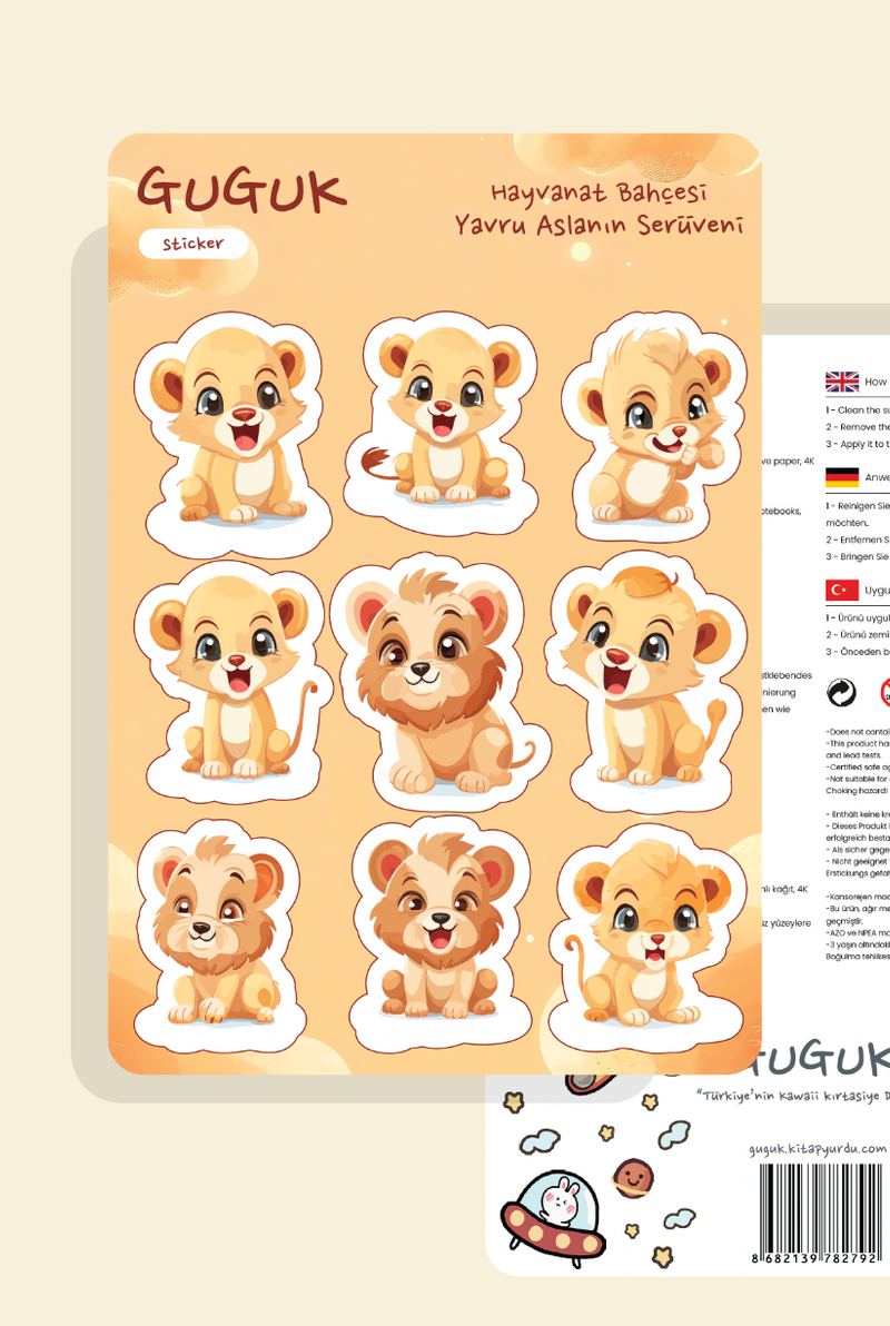 Minik Aslan Dünyası Sticker Yaprakları Seti
