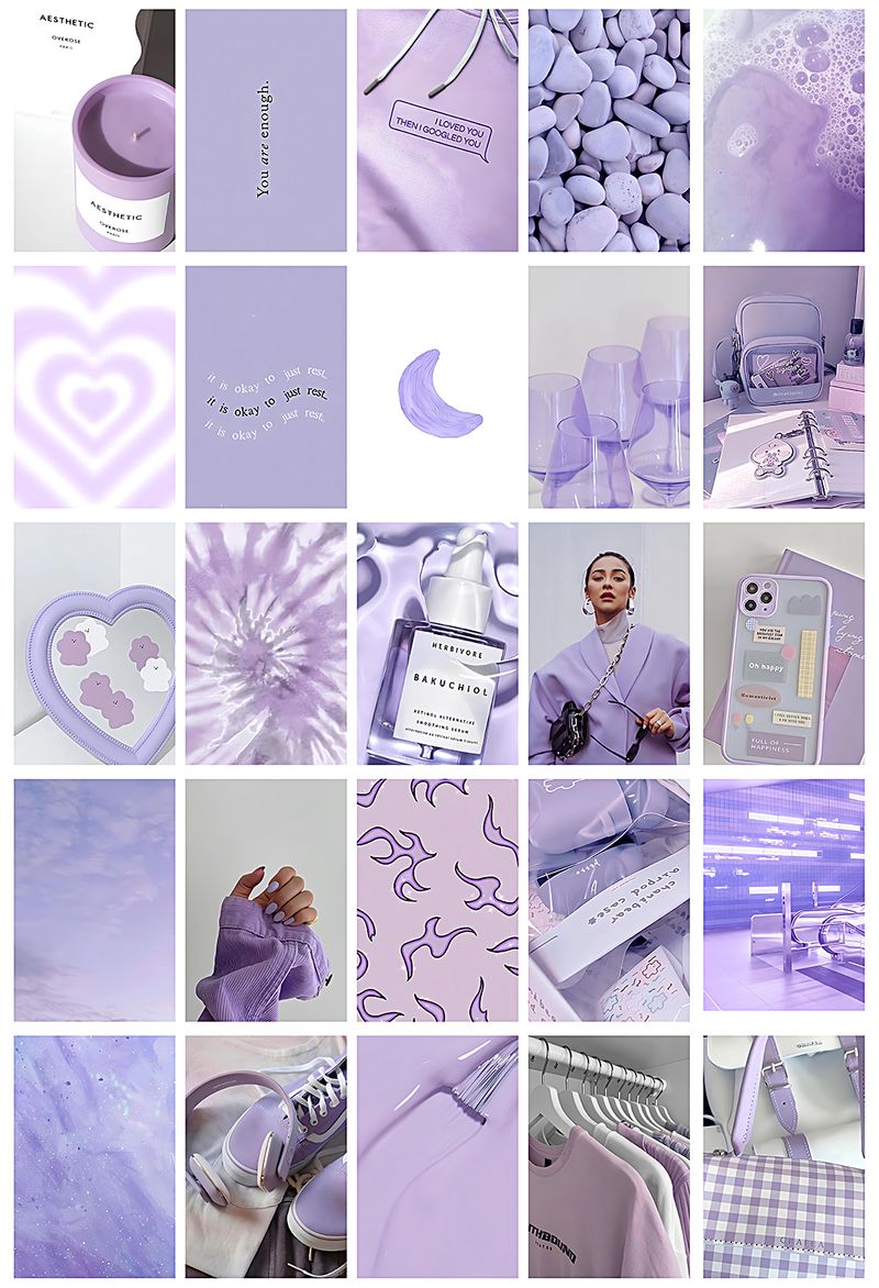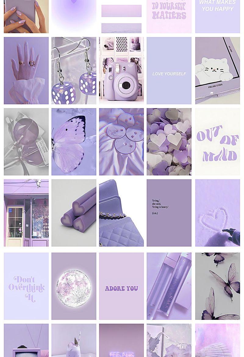 Mor Temalı 99 Adet Duvar Poster - Kolaj Seti Oda Dekoru