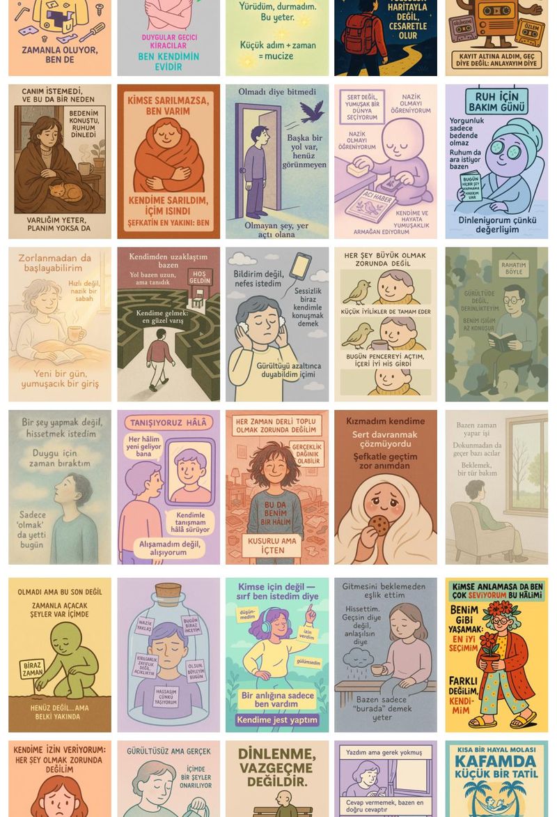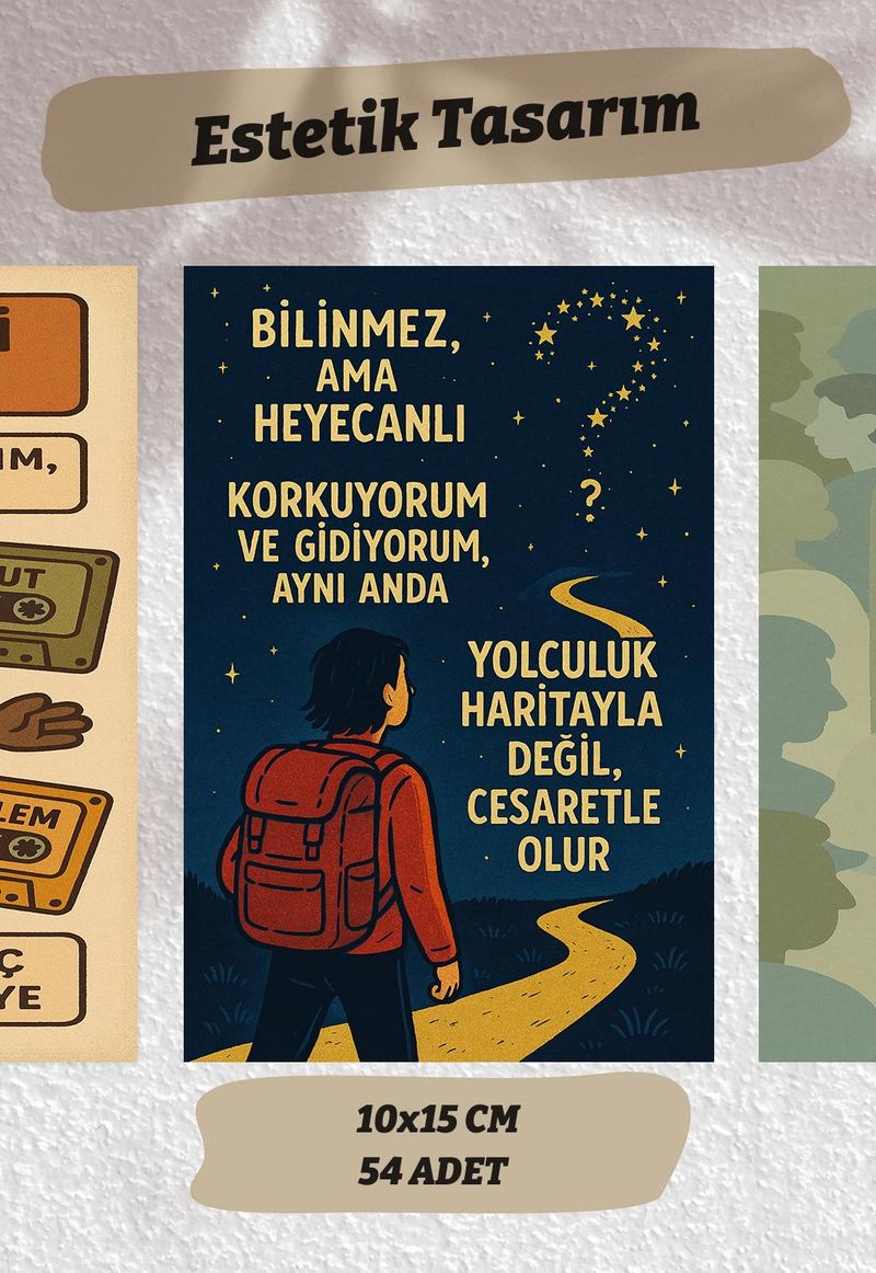 Motivasyon Risografları Temalı 54 Adet Duvar Poster Seti Oda Dekoru (Paspartulu)