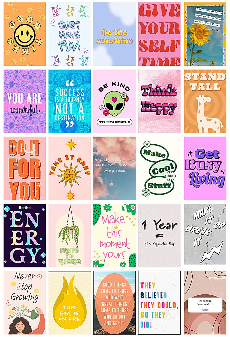 Motivasyon Sözleri Temalı 90 Adet Duvar Poster - Kolaj Seti Oda Dekoru