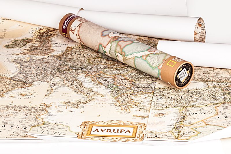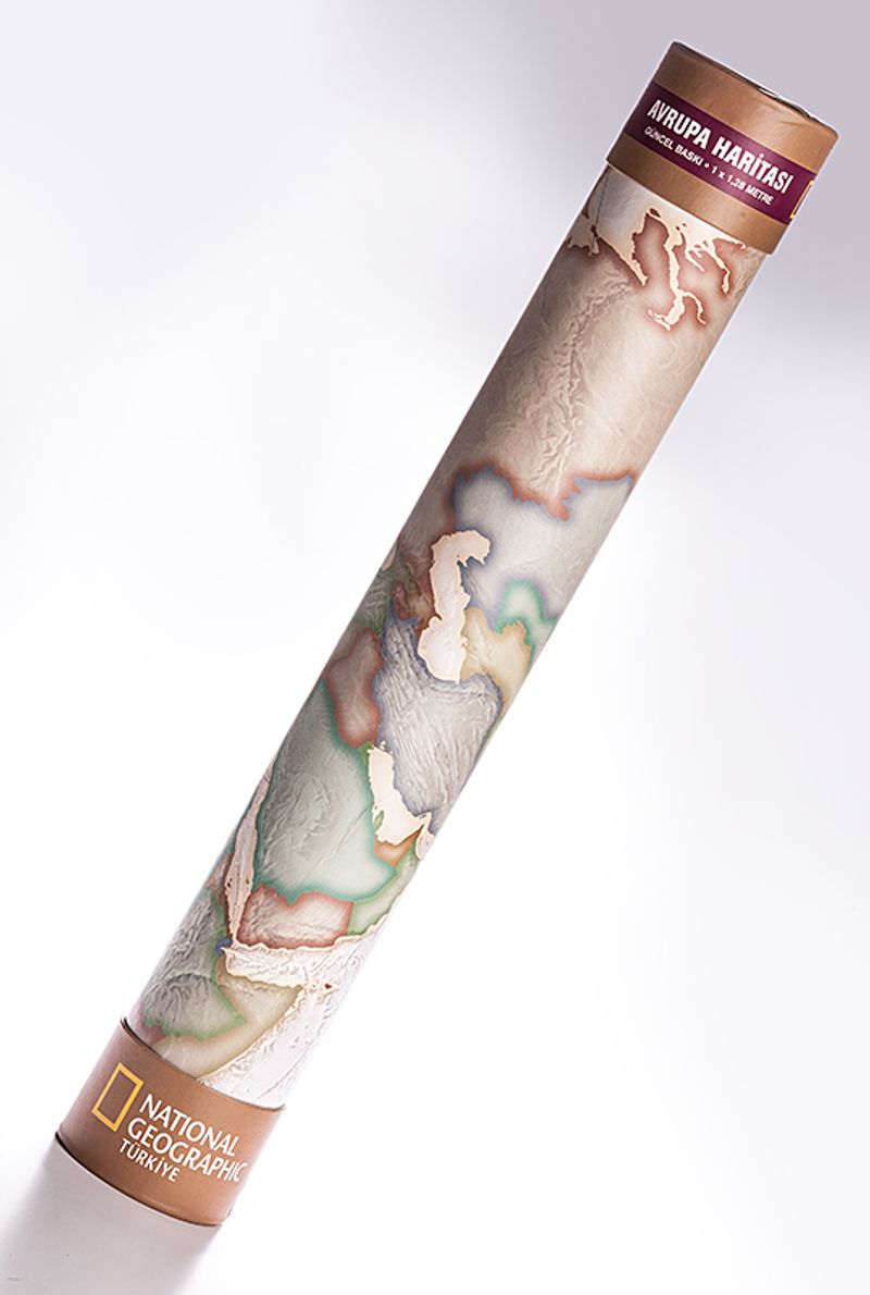 1 x 1,28 m. ebadında olan ve National Geographic Harita Departmanı tarafından özel olarak renklendirilen siyasi Avrupa Haritası en ince kartografik detayları içeriyor.