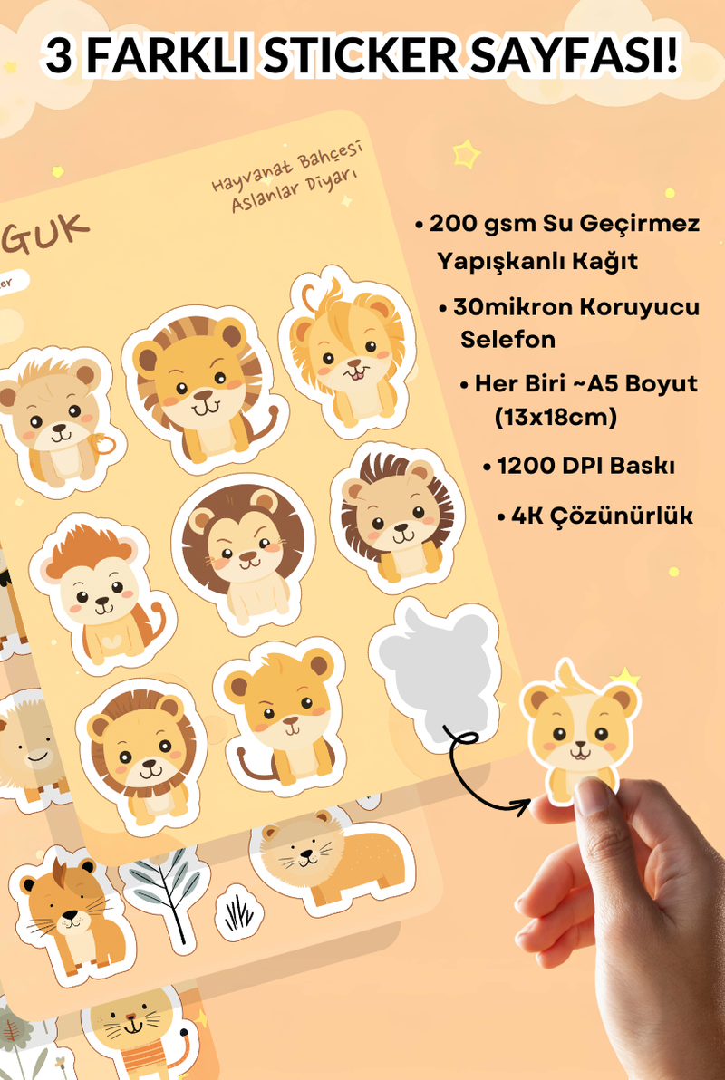• Her Biri ~A5 Boyutunda (13x18cm) 3 Farklı Sticker Yaprağı