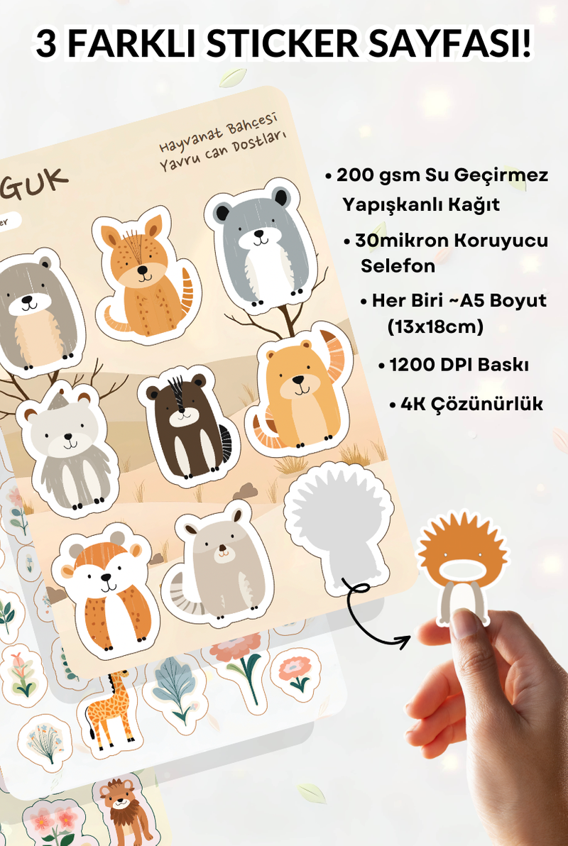 • Her Biri ~A5 Boyutunda (13x18cm) 3 Farklı Sticker Yaprağı