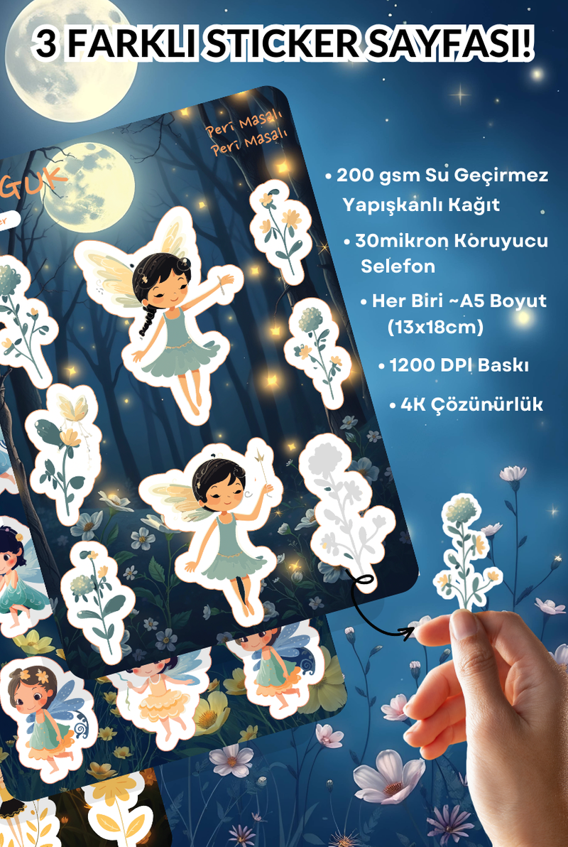 • Her Biri ~A5 Boyutunda (13x18cm) 3 Farklı Sticker Yaprağı