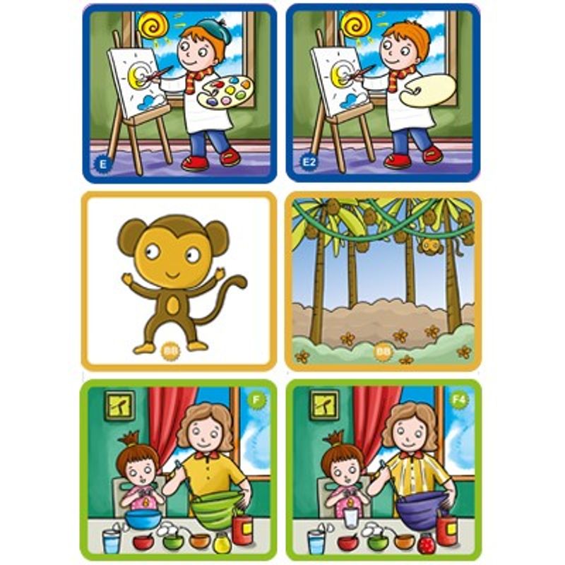 Setimiz içerisinde 7 adet aynı resme ait 2 eksiği bulma(toplam 14 kart) ve 7 adet benzer 2 resme ait 4 farkı bulma(toplam 14 kart) kartları ve 6 adette saklanmış olan hayvanı bul(toplam 12 kart) kartları bulunmaktadır.