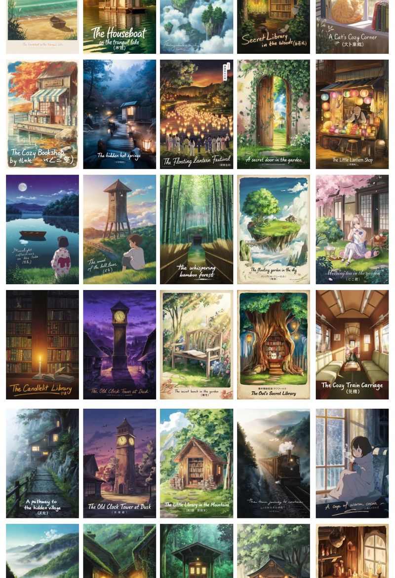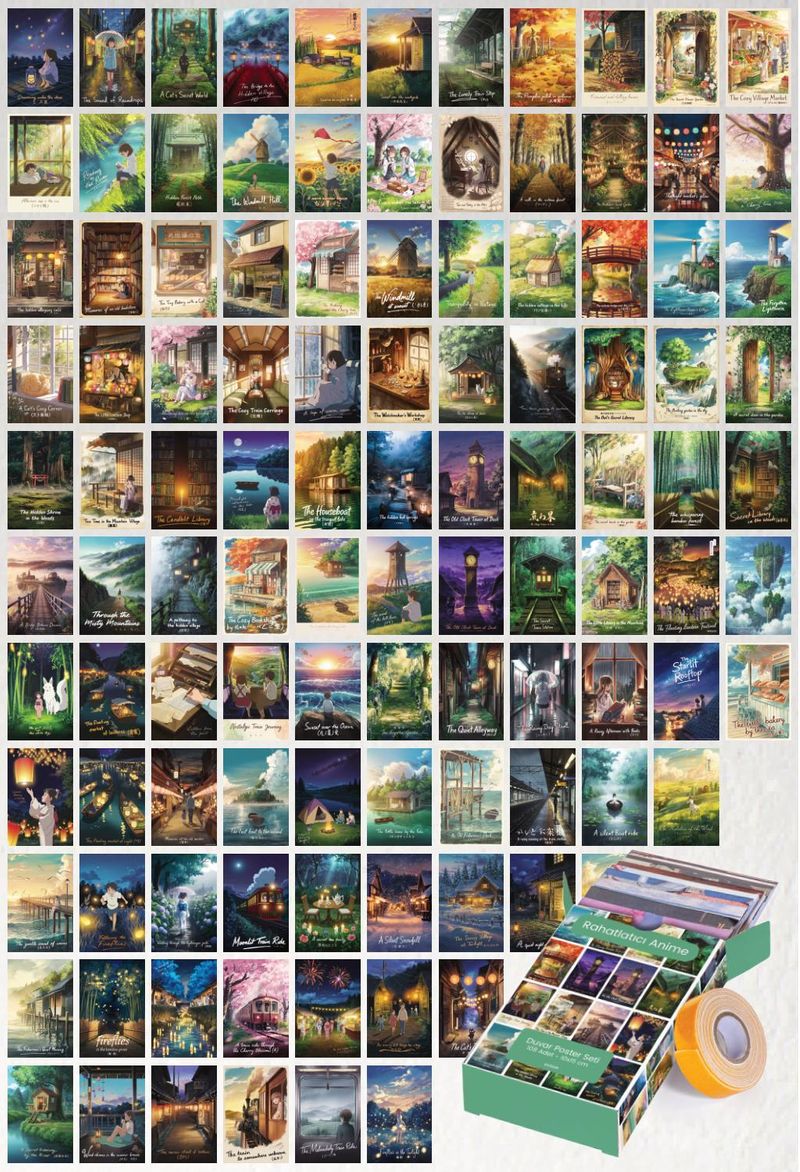 Rahatlatıcı Anime 108 Adet Duvar Poster Seti Oda Dekoru (Paspartulu)
