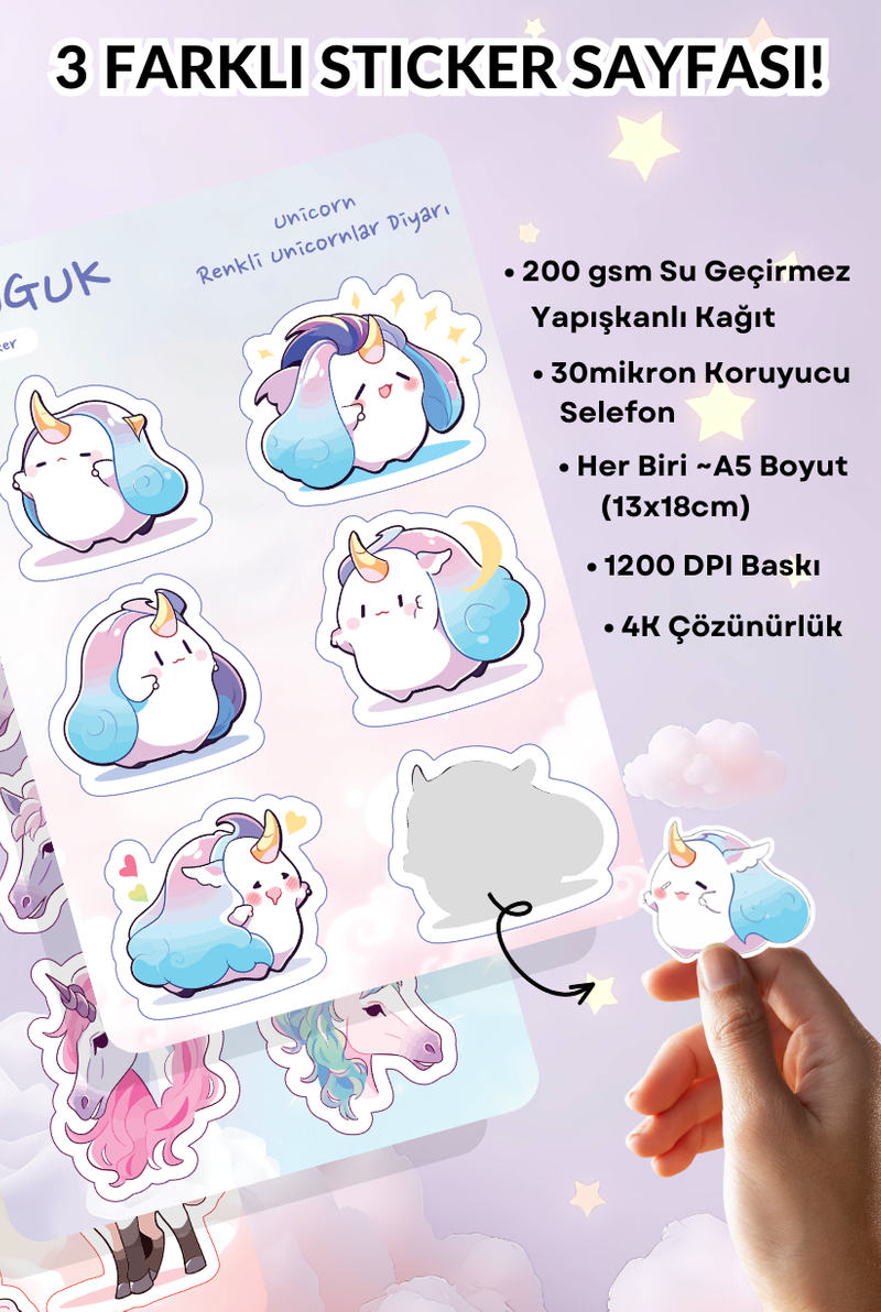 • Her Biri ~A5 Boyutunda (13x18cm) 3 Farklı Sticker Yaprağı