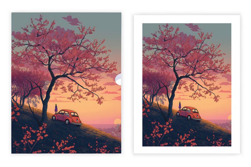 Sakura Ağacının Altında, Özel Tasarım Kılıflı A4 Poster