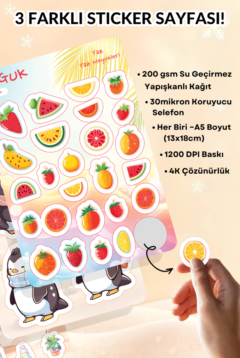 • Her Biri ~A5 Boyutunda (13x18cm) 3 Farklı Sticker Yaprağı