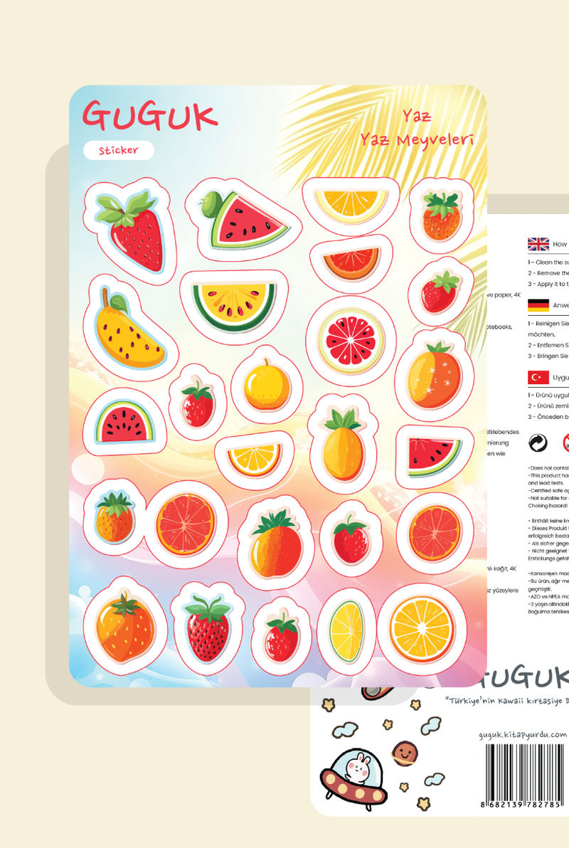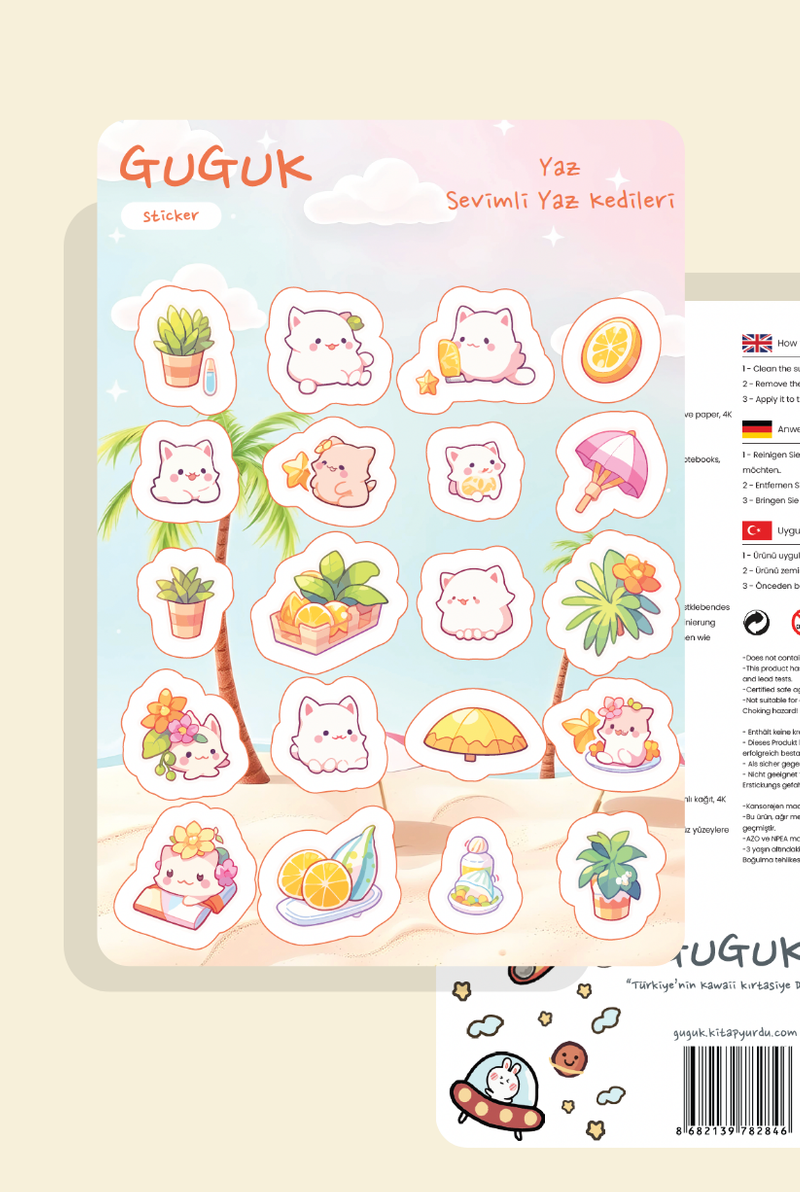 Her sticker, bir ifade, bir yaratıcılık ürünü. GUGUK Stickerları, bu ifadeyi dayanıklı yapısı ve canlı renkleriyle tamamlar. Ortalama bir kitap sayfasından yaklaşık üç kat daha kalın olan kağıt malzemesi tok bir dokunuş sunar. 1200 DPI yüksek çözünürlüklü baskı kalitesiyle tasarımlarınızı en ince detayına kadar kusursuz yansıtırken; selefon kaplaması sayesinde, renklerin canlılığı aylar geçse de ilk günkü gibi korunur! GUGUK Stickerları, sticker dünyasında kaliteyi deneyimlemeniz için hazırlandı.