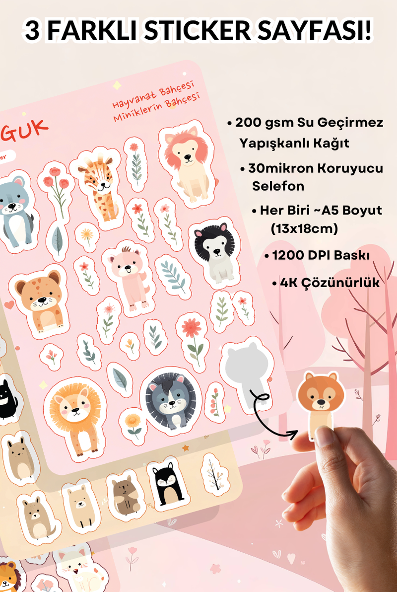 • Her Biri ~A5 Boyutunda (13x18cm) 3 Farklı Sticker Yaprağı