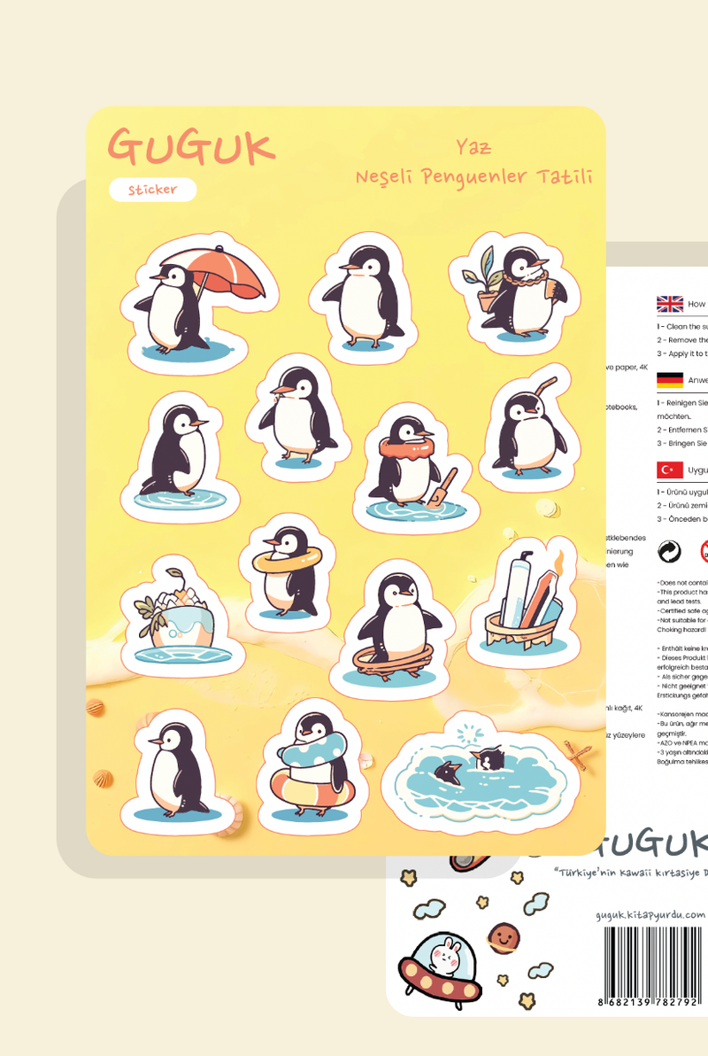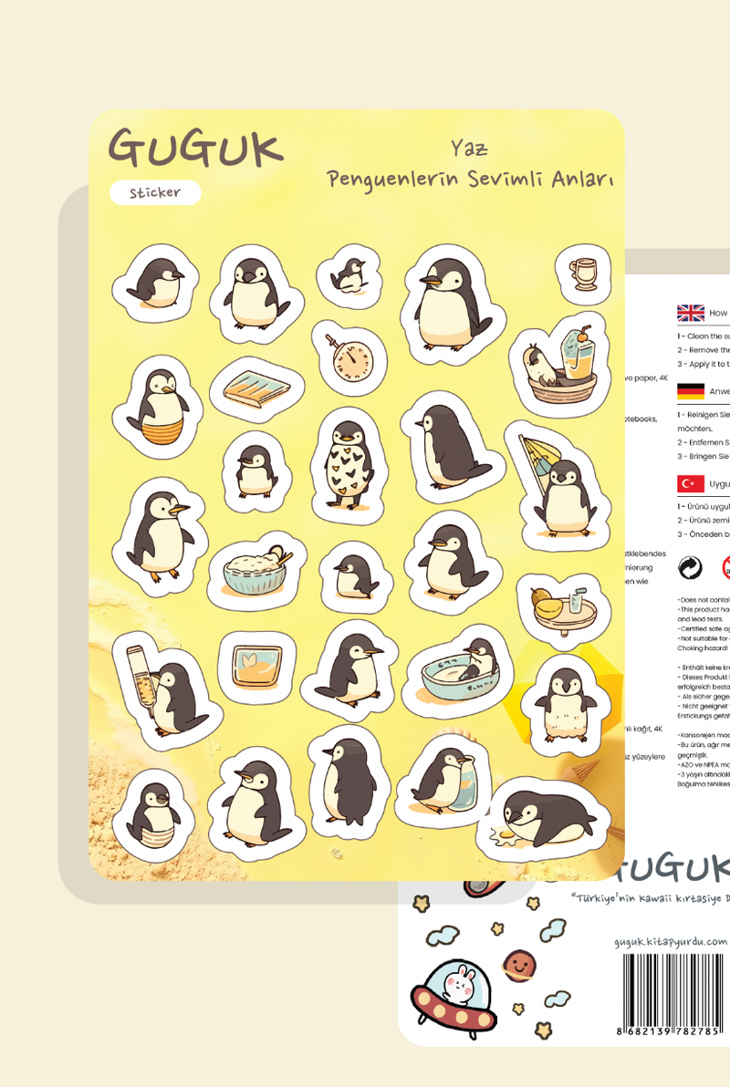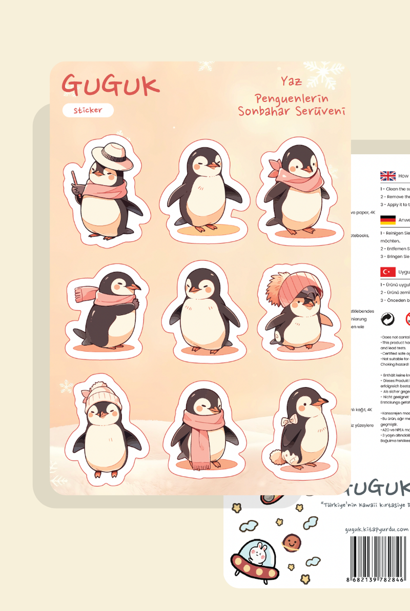 Sevimli Penguen Maceraları Sticker Yaprakları Seti