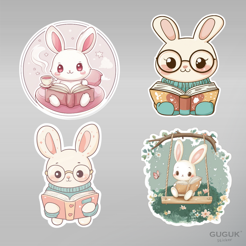 Sevimli Tavşan ve Kitap Sticker Seti