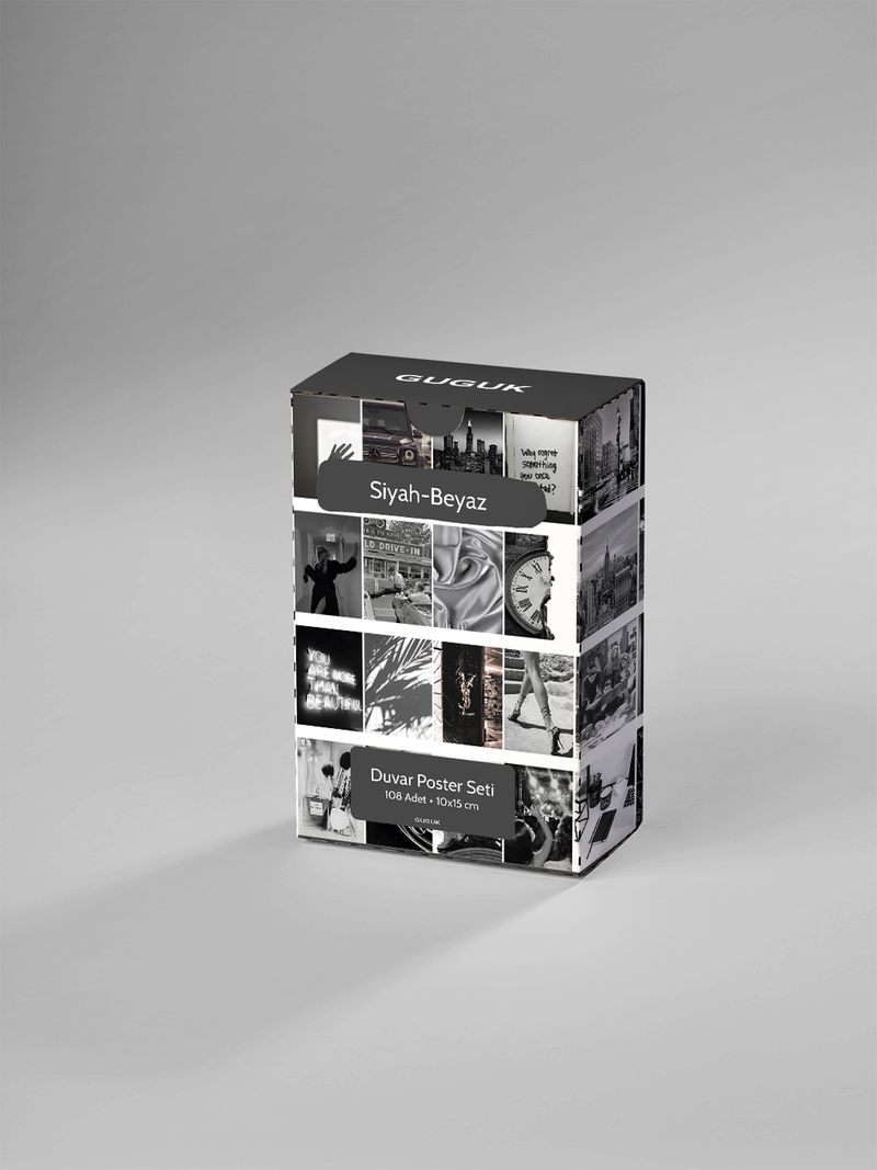 Siyah Beyaz Temalı 108 Adet Duvar Poster - Kolaj Seti Oda Dekoru
