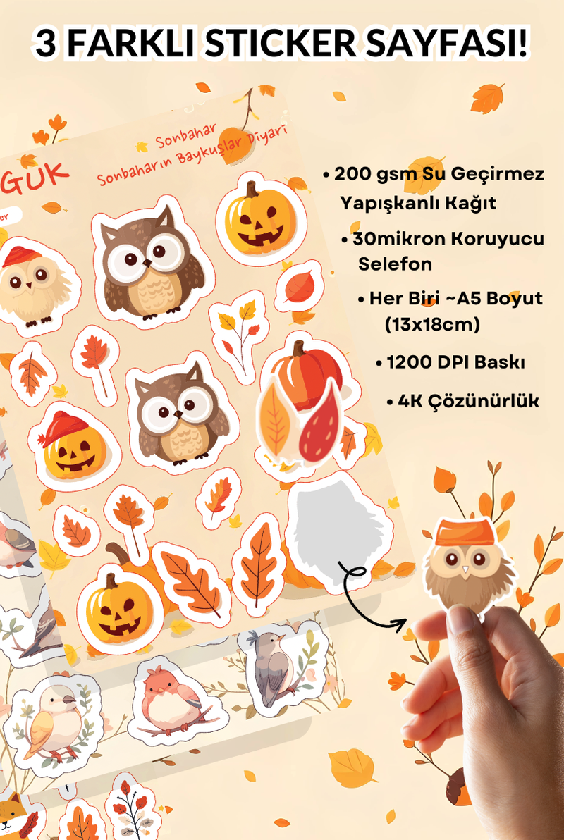 • Her Biri ~A5 Boyutunda (13x18cm) 3 Farklı Sticker Yaprağı