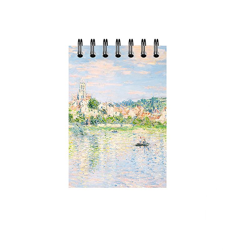 Summer at Vetheuil Spiral Not Defteri, 7.5 x 10 cm boyutlarında ve 160 sayfa (80 yaprak) kapasitesiyle pratik ve taşınabilir bir defterdir. Claude Monet'nin "Summer at Vetheuil" adlı eserinin kapağında yer aldığı bu defter, sanatı ve işlevselliği bir araya getiriyor. Çizim yaparken, not alırken veya günlük olarak kullanmak için idealdir.