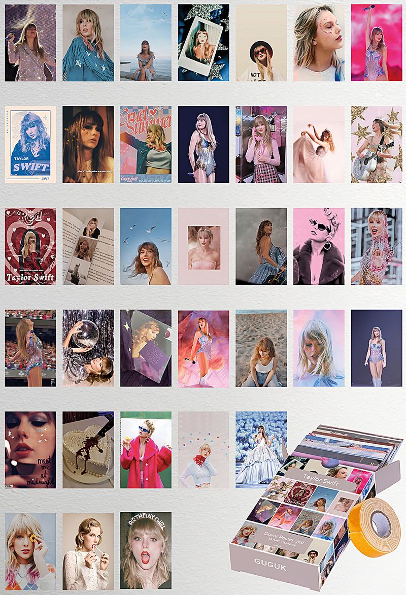 Taylor Swift Temalı 36 Adet Duvar Poster - Kolaj Seti Oda Dekoru