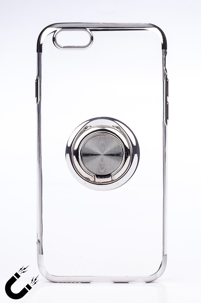 Telefon Kılıfı - Apple iPhone 6 ve 6S - Yüzüklü Şeffaf - Gümüş (TŞY-001)