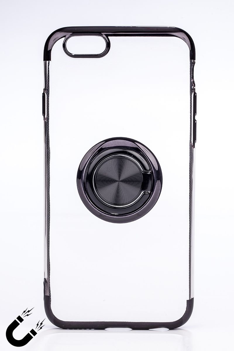 Telefon Kılıfı - Apple iPhone 6 ve 6S - Yüzüklü Şeffaf - Siyah
