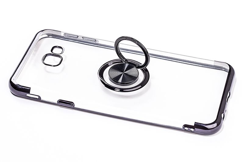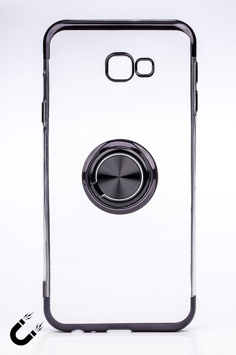 Telefon Kılıfı - Samsung Galaxy J4 Plus - Yüzüklü Şeffaf - Siyah (TŞY-020)