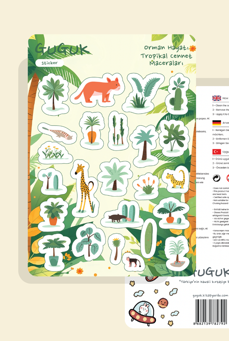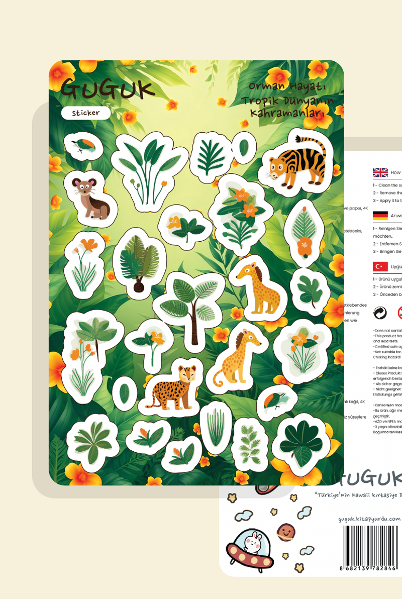 Her sticker, bir ifade, bir yaratıcılık ürünü. GUGUK Stickerları, bu ifadeyi dayanıklı yapısı ve canlı renkleriyle tamamlar. Ortalama bir kitap sayfasından yaklaşık üç kat daha kalın olan kağıt malzemesi tok bir dokunuş sunar. 1200 DPI yüksek çözünürlüklü baskı kalitesiyle tasarımlarınızı en ince detayına kadar kusursuz yansıtırken; selefon kaplaması sayesinde, renklerin canlılığı aylar geçse de ilk günkü gibi korunur! GUGUK Stickerları, sticker dünyasında kaliteyi deneyimlemeniz için hazırlandı.