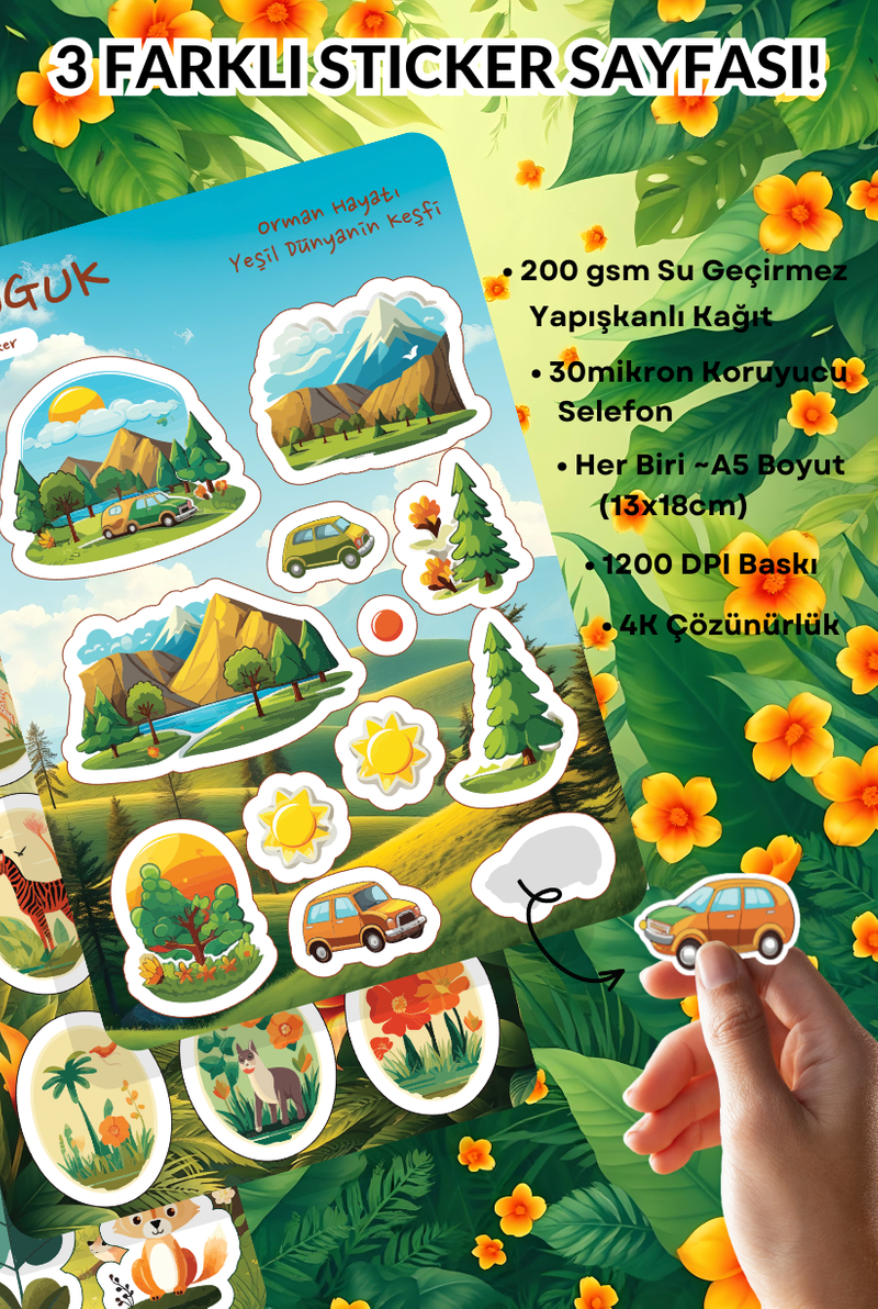 • Her Biri ~A5 Boyutunda (13x18cm) 3 Farklı Sticker Yaprağı