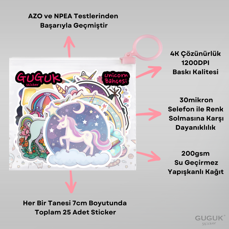 • Her biri 7 cm boyutunda toplam 25 adet sticker
