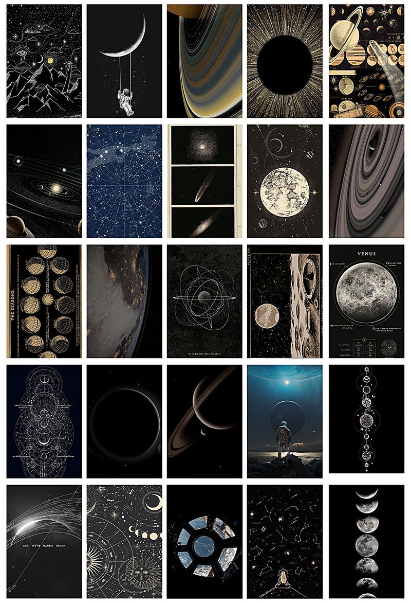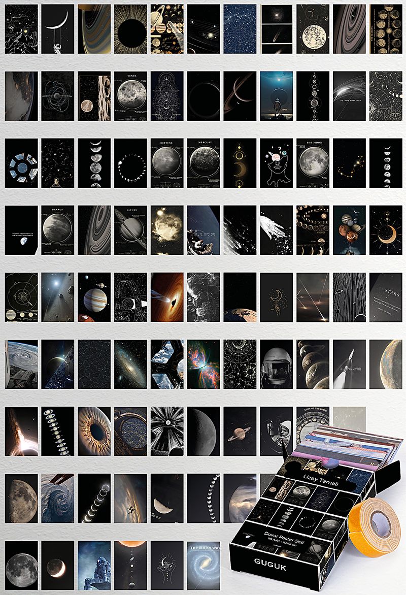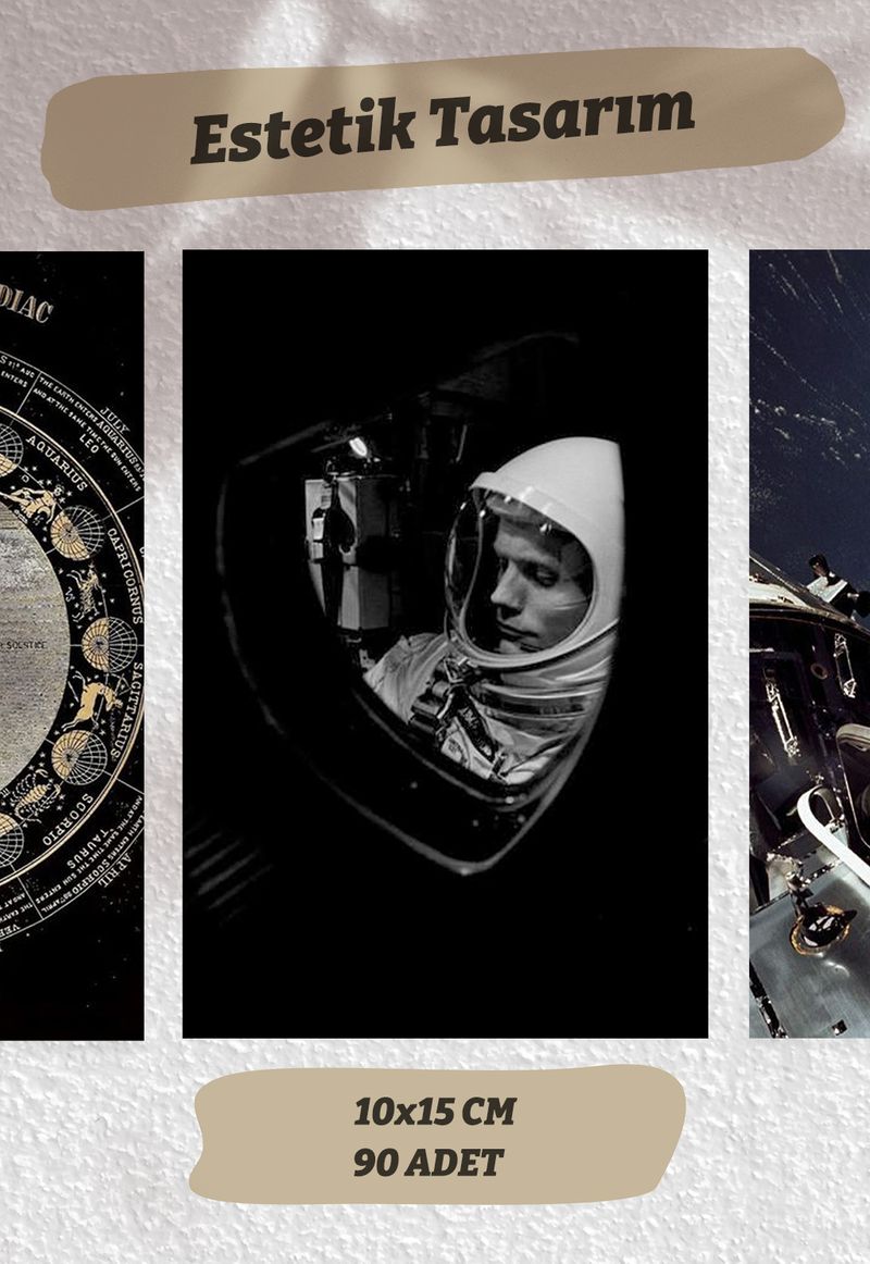 Uzay Temalı 90 Adet Duvar Poster - Kolaj Seti, Oda Dekoru (Paspartulu)