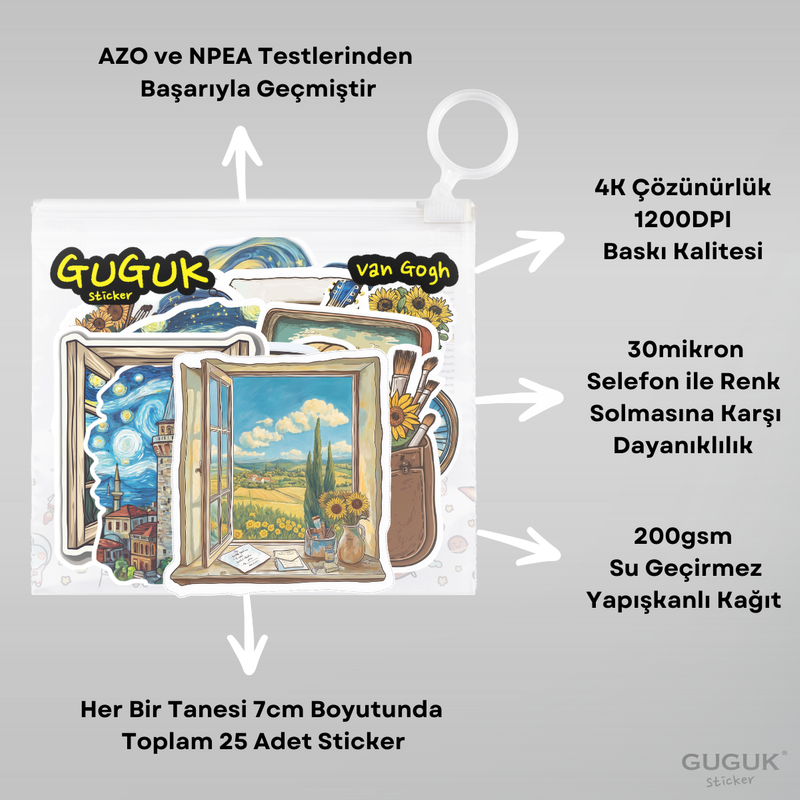 Her sticker, bir ifade, bir yaratıcılık ürünü. GUGUK Stickerları, bu ifadeyi dayanıklı yapısı ve canlı renkleriyle tamamlar. Ortalama bir kitap sayfasından yaklaşık üç kat daha kalın olan kağıt malzemesi tok bir dokunuş sunar. 1200 DPI yüksek çözünürlüklü baskı kalitesiyle tasarımlarınızı en ince detayına kadar kusursuz yansıtırken; selefon kaplaması sayesinde, renklerin canlılığı aylar geçse de ilk günkü gibi korunur! GUGUK Stickerları, sticker dünyasında kaliteyi deneyimlemeniz için hazırlandı.