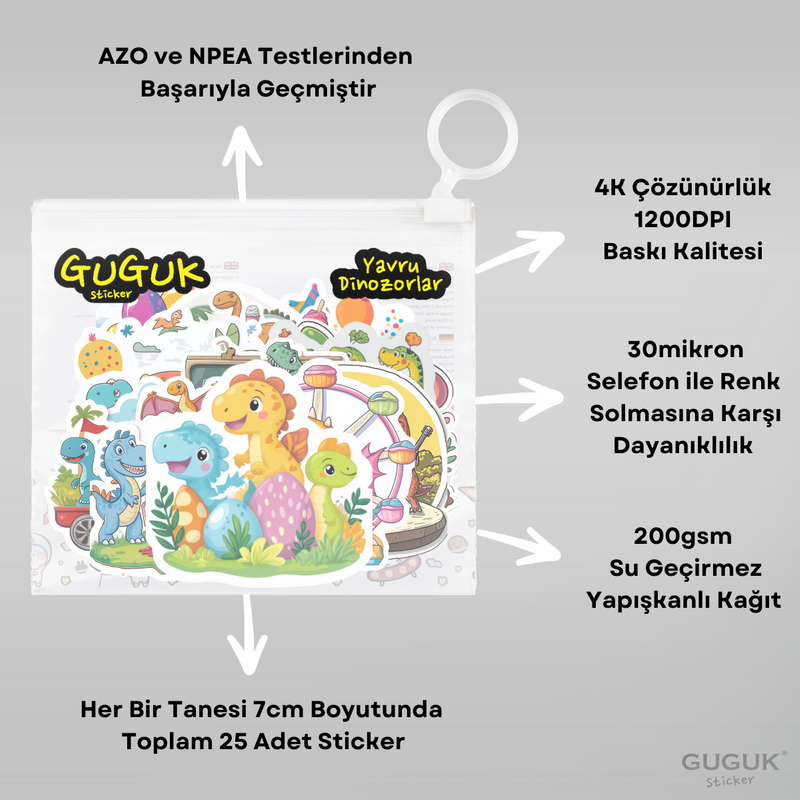 • Her biri 7 cm boyutunda toplam 25 adet sticker
