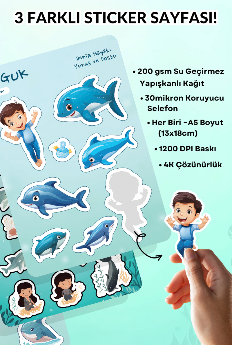 • Her Biri ~A5 Boyutunda (13x18cm) 3 Farklı Sticker Yaprağı